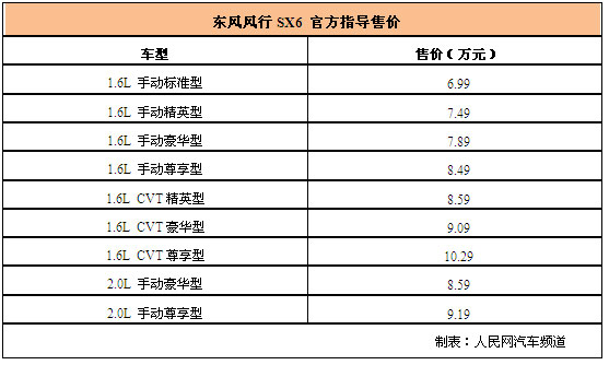 東風風行SX6正式上市 售價6.99-10.29萬元