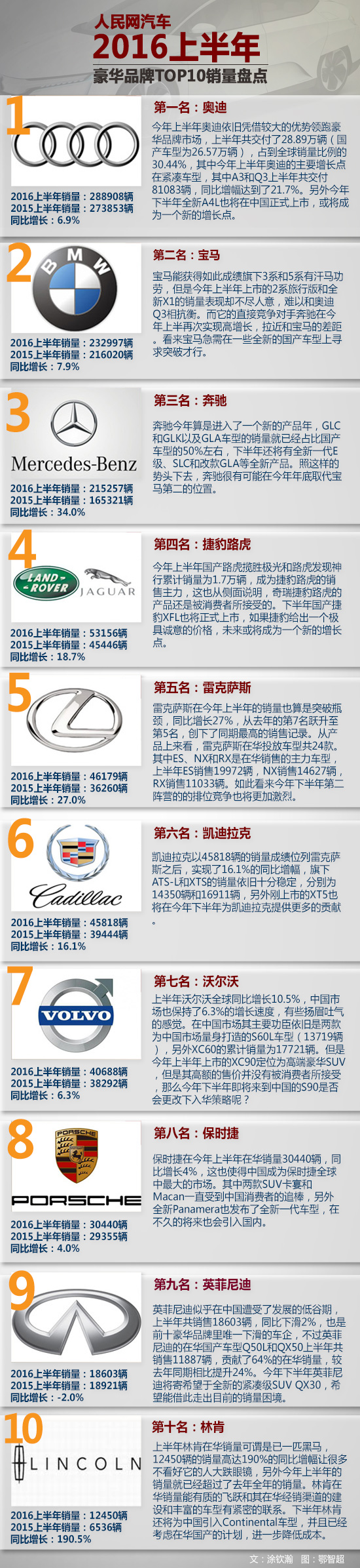 2016上半年十大豪華品牌銷量盤點 英菲尼迪掉隊銷量下跌2%