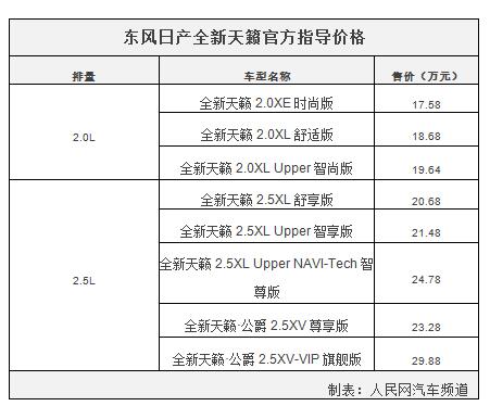 東風(fēng)日產(chǎn)新天籟正式上市 售價17.58萬-29.88萬元