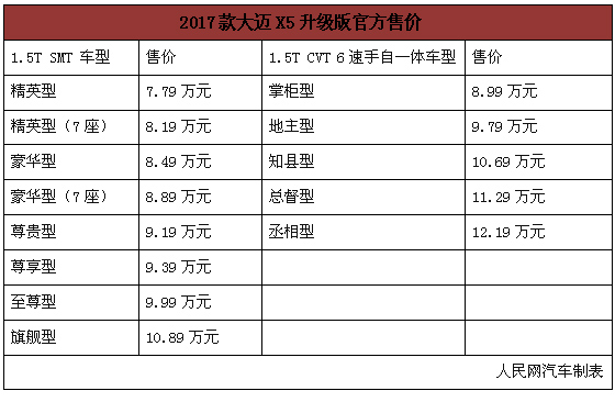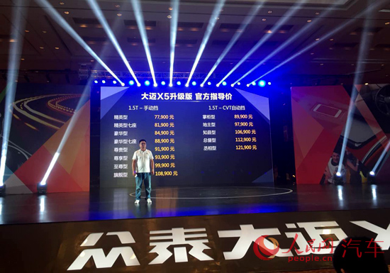 人民網(wǎng)江蘇8月4日電 (竇明)8月3日晚,2017款大邁X5升級(jí)版正式上市,新車共推出包含五座、七座在內(nèi)的13款車型,官方指導(dǎo)價(jià)為7.79-12.19萬(wàn)元。同時(shí),眾泰大邁正式啟用全新“Domy”標(biāo)識(shí),并且大邁X7也亮相本次發(fā)布會(huì)。
