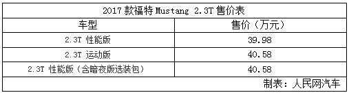 人民網(wǎng)北京8月19日電(鄂智超)日前,記者從福特中國(guó)官方得知,旗下的2017款福特Mustang 2.3T已正式上市。新車推出了性能版和運(yùn)動(dòng)版兩款車型和一款選裝包車型,售價(jià)區(qū)間為39.98-40.58萬(wàn)元。
