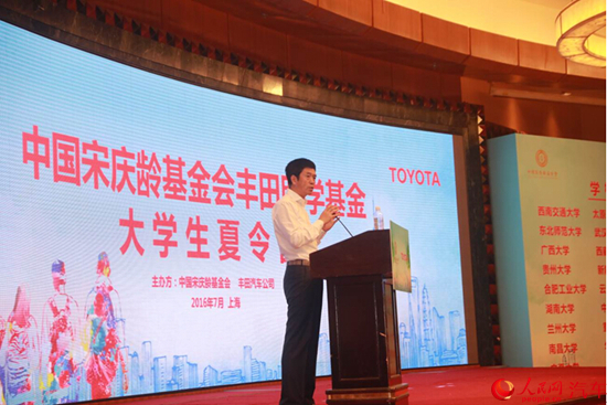 人民網(wǎng)上海8月1日電(胡挹工)由中國宋慶齡基金會攜手豐田汽車(中國)投資有限公司(以下簡稱豐田中國)聯(lián)合主辦的“2016年豐田助學(xué)基金大學(xué)生夏令營”活動于近日正式在上海落下帷幕。來自全國26所接受宋慶齡基金會“豐田助學(xué)基金”項(xiàng)目高校的260名大學(xué)生匯聚一堂,在7天的活動中通過拓展訓(xùn)練、勵志分享會、企業(yè)文化學(xué)習(xí)等內(nèi)容培養(yǎng)意識,開闊視野,獲得了進(jìn)一步成長。