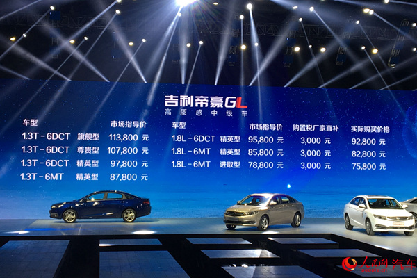 售7.88萬- 11.38萬元 吉利帝豪GL正式上市