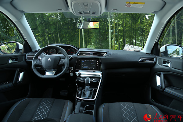 新車內(nèi)飾采用了類似308S的風(fēng)格雖屬意料之中,但新車并未完全照搬后者的造型,而是汲取了海外版新一代3008車型的部分設(shè)計靈感。新車中控臺向駕駛員一側(cè)有5.8度的傾斜,符合“唯我座艙”的設(shè)計理念。另外,新車中控臺使用了碳纖維紋路內(nèi)飾面板,提升了運動氣息。