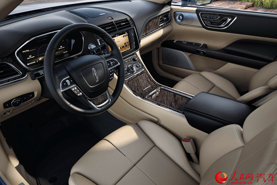 在內(nèi)飾設(shè)計(jì)上,全新林肯大陸體現(xiàn)出了與歐洲豪華品牌車型不同的豪華風(fēng)格,其總統(tǒng)版車型提供了靜謐之地(Chalet)、榮耀之冠(Thoroughbred)與狂想藍(lán)調(diào)(Rhapsody)三種主題配色。中控臺(tái)造型比較簡約,其上采用了大面積皮革材質(zhì)包裹,突出了質(zhì)感。此外,在車門等處的亮金屬飾板與木質(zhì)飾板相呼應(yīng),營造了獨(dú)樹一幟的豪華氛圍。