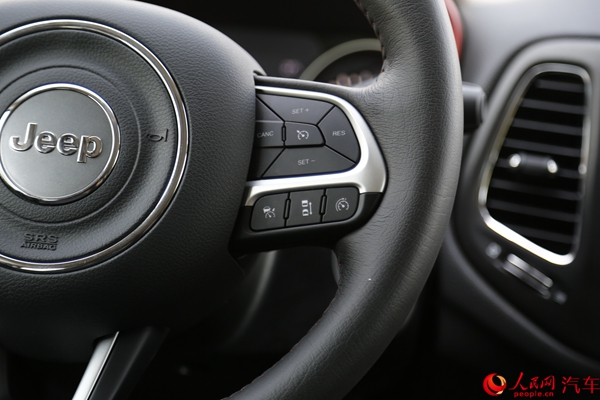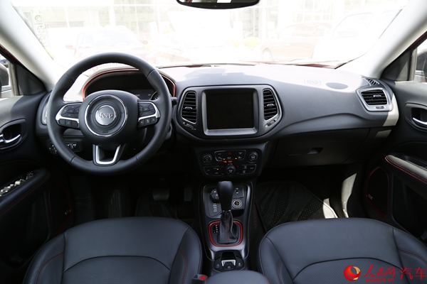 進(jìn)入車內(nèi),Trailhawk版的內(nèi)飾以黑色為主,但隨處可見的紅色縫線則勾勒出車內(nèi)躁動的氣息。