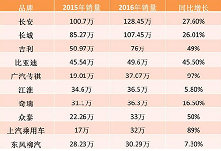 據(jù)中國(guó)汽車工業(yè)協(xié)會(huì)統(tǒng)計(jì)分析,在2016年中國(guó)品牌乘用車銷量首次超過(guò)千萬(wàn)輛,共銷售1052.86萬(wàn)輛,同比增長(zhǎng)20.50%,占乘用車銷售總量的43.19%,占有率比上年同期提升2個(gè)百分點(diǎn)。而在今年1-3月份,中國(guó)品牌乘用車共銷售272.03萬(wàn)輛,同比增長(zhǎng)6.54%,占乘用車銷售總量的45.74%,占有率比上年同期提升0.82個(gè)百分點(diǎn)。