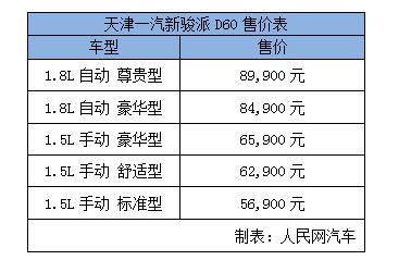 人民網(wǎng)天津5月27日電(曹淼)5月26日,天津一汽新駿派D60正式上市。新車搭載1.5L和1.8L兩種動(dòng)力,共有5款車型,售價(jià)區(qū)間為5.69萬—8.99萬元。