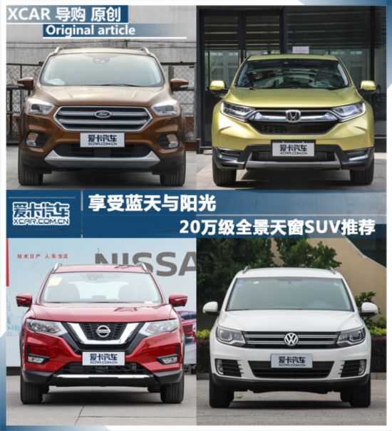 本次,我們?yōu)榇蠹規(guī)淼氖?0萬級帶全景天窗SUV的推薦,它們是長安福特翼虎、東風本田CR-V、東風日產(chǎn)奇駿以及上汽大眾途觀絲綢之路版。