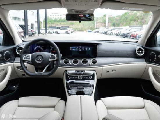 E級的內(nèi)飾采用了大面積的木紋飾板進(jìn)行裝飾,整體風(fēng)格和外觀一樣向S級靠攏。12.3英寸全液晶儀表盤與大尺寸中控屏幕相連,貫穿懸浮式設(shè)計大氣十足。