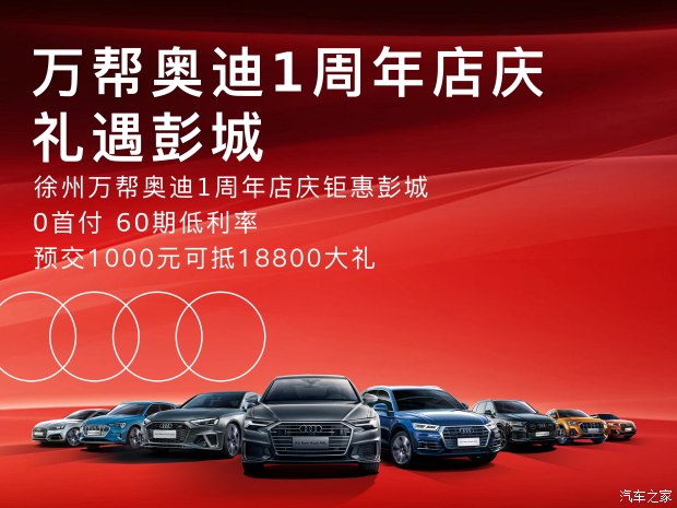 徐州萬幫奧迪位于徐州經濟開發(fā)區(qū)徐海路26號,2021年12月1日-12月31日,徐州萬幫奧迪一周年店慶,購車享十重優(yōu)惠好禮:進店禮,試駕禮,金融禮,定金禮,置換禮,大用戶禮,會員禮,現車禮,訂車禮,抽獎禮!锲疯b專線:400-830-2379★獲悉更多優(yōu)惠信息,請點擊下方【詢價】按鈕