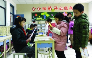 南昌路小學是南京市的小班化示范校,一個班只有25個學生。“一年級的老師為了考查孩子們的學習情況,從期初就開始準備了。孩子們平時課堂上得到的星星,寫習字冊、讀書的星星都做了統(tǒng)計,用星星換分數(shù),寫到‘成長腳印’的最終評價里。”南昌路小學有關(guān)負責人表示。