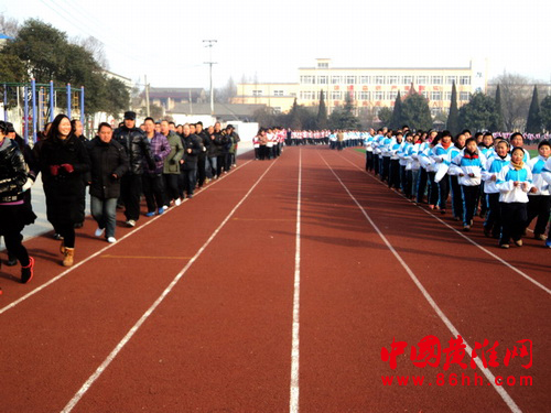 中國黃淮網(wǎng)訊(采編 溫鰲 通訊員 李靜)2013年1月7日,徐州市銅山區(qū)柳新鎮(zhèn)中心中學(xué)參加銅山區(qū)陽光體育長跑活動正式開始。銅山區(qū)教育局教研室領(lǐng)導(dǎo)武云飛老師、周紅老師、石冰冰老師親臨現(xiàn)場觀摩指導(dǎo)。