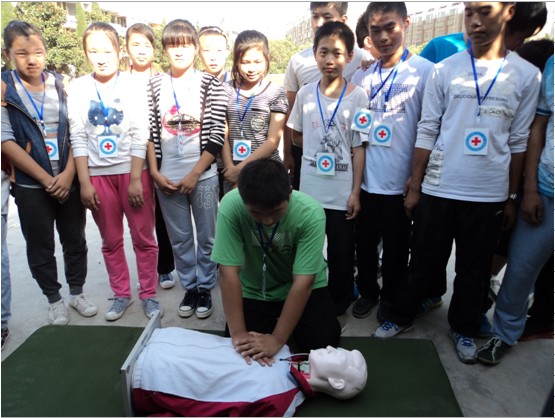 培訓(xùn)時間:是9月中旬開始,衛(wèi)生室具體負(fù)責(zé),組織1200名學(xué)生參加救護(hù)知識培訓(xùn)。培訓(xùn)的內(nèi)容包括:止血、三角巾包扎、心肺復(fù)蘇等項(xiàng)目。我們利用健康課和體育課對學(xué)生進(jìn)行培訓(xùn),在課堂上通過現(xiàn)場的演示,使學(xué)生真正掌握了一些救護(hù)的知識。