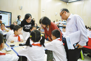 中央電教館王姝姝館長(zhǎng)和江蘇省電教館尤學(xué)貴館長(zhǎng)深入附小課堂。