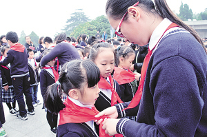 給新隊(duì)員佩戴紅領(lǐng)巾