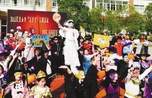 10月30日下午,徐州星光小學操場上,來自星光小學本部和湖北路分校5年級,約550個孩子盛裝打扮,正在舉行“瘋狂”的萬圣節(jié)活動——2015星光小學“萬圣節(jié)”主題活動。