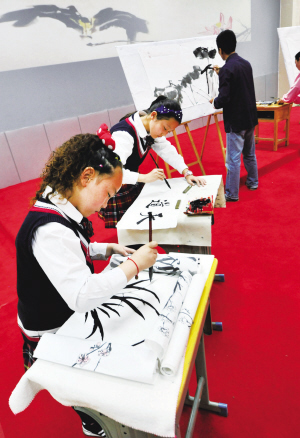 星光小學(xué)的兩位老師也興致勃勃地表演了一套太極拳,并展示了行云流水的中國書法。隨后,中國孩子表演的武術(shù)、樂器演奏等,將文藝演出推向高潮。