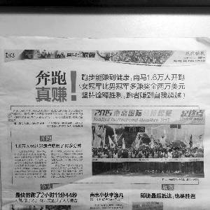 “女冠軍比男冠軍多賺獎金兩萬美元。堅持詮釋勝利,跑者賺到自我超越。”記者再次從報紙上抽取了一段29個字的標題,“總計235畫。”用時正好20秒,徐婷婷說出了準確答案。