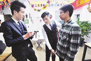 為什么會出現(xiàn)上門量體卻不合身呢?曾球做了反思,原來根據(jù)服裝教材來量體并不完全科學(xué),他們認真摸索,總結(jié)出一套量體方案,比如對于肚子大的人、腿粗的人,量體方式都有不同技巧,F(xiàn)在“奮斗兄弟”的每個門店,量體師都是受過專門培訓(xùn),這種因量錯尺寸而返工的事情漸漸杜絕了。
