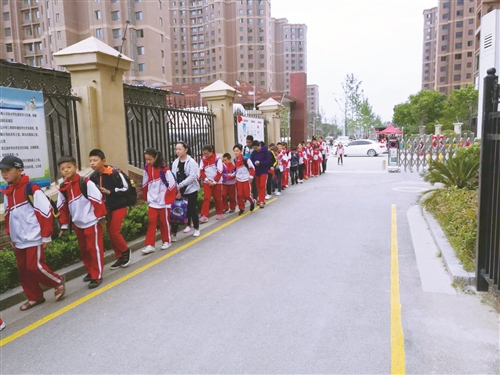 從史莊小學(xué)的大門進(jìn)入教室和操場(chǎng),都要經(jīng)過一條寬約兩米的狹窄道路。上下學(xué)期間,學(xué)生很容易發(fā)生擁堵。上學(xué)期,為提高學(xué)生們的道路交通安全意識(shí),該校開展了自覺靠右行,井然有序上、放學(xué)的交通安全教育活動(dòng)。每到上、下學(xué)期間,學(xué)校會(huì)組織教師在校門前指揮、引導(dǎo)學(xué)生守紀(jì)律,靠右行。在老師的指引下,學(xué)生們都貼著道路右側(cè),排成一隊(duì),有序前行,在提高了行進(jìn)速度的同時(shí),也很好地減輕了校門前的交通壓力。不到一周的時(shí)間,這里的學(xué)生們就做到了不需要老師的引導(dǎo),自覺主動(dòng)地靠右行走。進(jìn)出之間,讓人看到的盡是秩序井然,毫不混亂。而這,也成了史莊小學(xué)獨(dú)特的一道風(fēng)景。