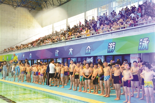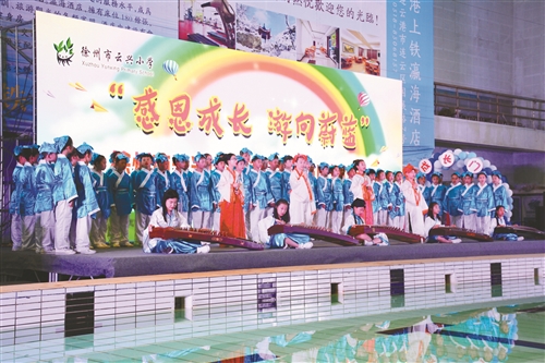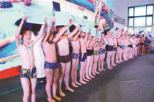 5月29日,徐州鐵路游泳館內(nèi)童聲嘹亮,歌聲回蕩。