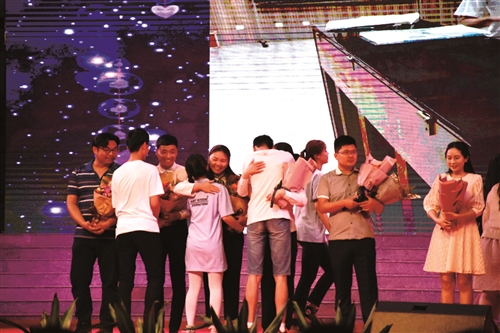 銅山中專對口高考升入本科院校學(xué)生給教師獻(xiàn)花。