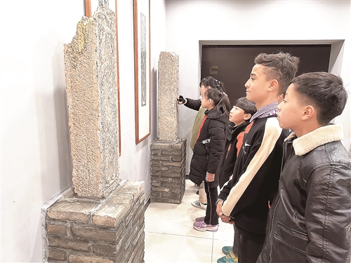 學(xué)生在學(xué)校漢文化教育體驗(yàn)館參觀。