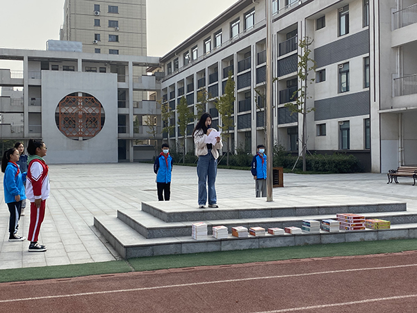 黃淮網 11月1日上午9點,徐州市星光小學榮盛城校區(qū)舉行了讀書漂流活動動員儀式!魯瑞亭老師在國旗下進行讀書漂流活動的動員工作,鼓動孩子們多讀書、讀好書,領略廣闊的天地,欣賞壯麗的山河,知文史經,品詩詞歌賦;回味古老的悠長,眺望未來的瑰麗!并倡議在本次的讀書月活動中,每天在班級內選兩名同學進行分享!