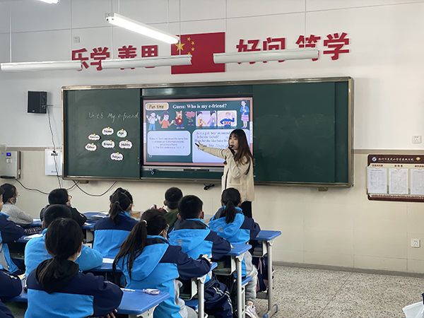 馮雨琦老師執(zhí)教的是五年級上冊Unit6 My e-friends的Fun time和Grammar time。馮老師在課前認(rèn)真鉆研教材,潛心備課,給聽課的老師們展示了精彩紛呈的課堂,也為老師們打開了新的備課、上課思路,彰顯了英語學(xué)科的獨(dú)特魅力。