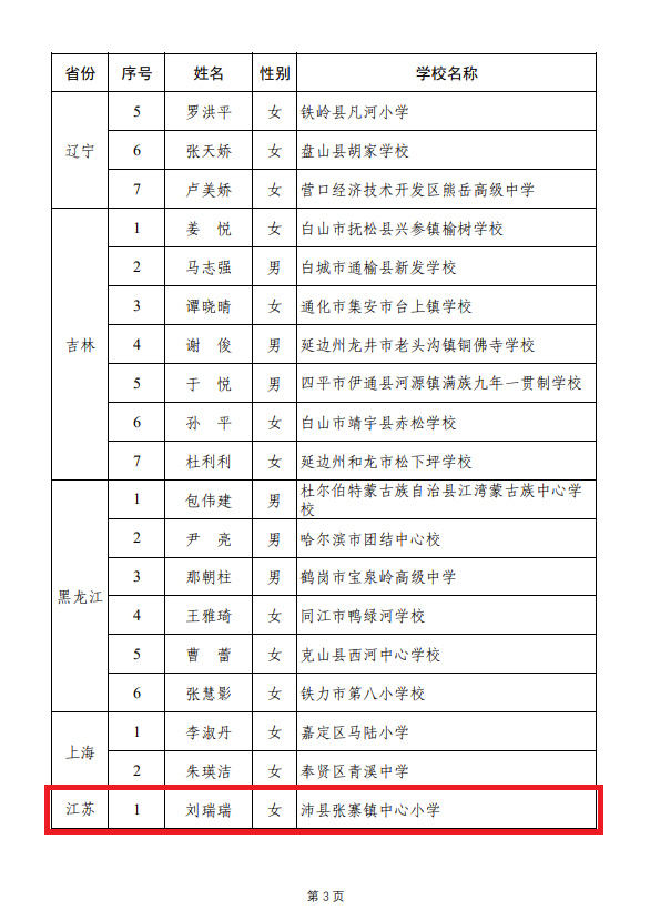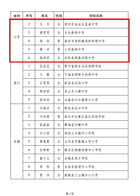 原題:江蘇6名中小學(xué)教師,入選國家級名單