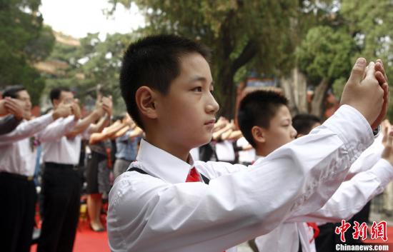 9月9日,在北京孔廟大成殿廣場,120余名小學(xué)生用古禮祭拜先師孔子,紀(jì)念教師節(jié)的到來。“第三屆北京孔廟國子監(jiān)國學(xué)文化節(jié)”也就此拉開帷幕,而該文化節(jié)的閉幕式則將在孔子誕辰之日9月28日舉行。中新社發(fā) 張浩 攝