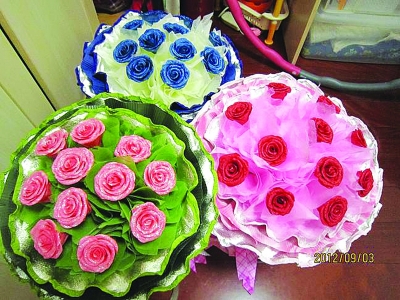 pucher告訴記者,為了讓禮物看上去比較精美,自己只要一有空就在家里苦練扎花技術(shù),從制作花瓣到黏貼花蕾再到噴繪,練習(xí)了50多朵后,才最終做出了滿意的效果。“現(xiàn)在我比較熟練了,做一朵花只要45分鐘!”昨天早晨不到8點(diǎn),pucher就帶著三束玫瑰花早早的來到了兒子就讀的幼兒園門口。