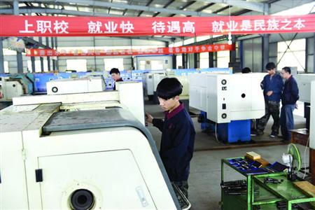 □5月28日,山東省鄒平縣職業(yè)學(xué)校的學(xué)生在操作數(shù)控車(chē)床,校企對(duì)接使該校就業(yè)率保持在98%以上。/新華社