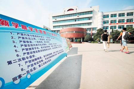 8月24日,是河南省偃師市高級(jí)中學(xué)(以下簡(jiǎn)稱偃高)報(bào)到的日子,而學(xué)校門口的包括“男女兩次拉手將開(kāi)除”,“嚴(yán)禁攜帶手機(jī)”等在內(nèi)的“八條禁令”,引來(lái)了不少市民的關(guān)注。對(duì)于這條禁令,學(xué)生、家長(zhǎng)、校方各有看法。昨日,記者對(duì)此進(jìn)行走訪。