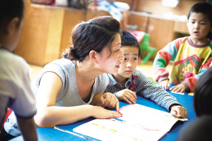 從2008年起,董老師作為華夏天使志愿者團隊中“愛心家教組織”原創(chuàng)成員,走上了志愿服務(wù)之路。她最先接觸的服務(wù)兒童是家住民祥園的苗苗。“苗苗跟家住徐州的奶奶生活,而奶奶的家庭是后組建的,全家人只靠爺爺一人的養(yǎng)老金生活,爺爺?shù)纳眢w又不好,經(jīng)常打針吃藥。了解情況后,我覺得這個孩子真的很可憐,就想去關(guān)心一下。”從這一次看望起,董老師每周六上午都會到苗苗家給孩子補習(xí)功課,直到苗苗小學(xué)畢業(yè),回到老家。苗苗的成績也由60多分上升90分。“剛開始做志愿,可能是同情心的驅(qū)使。但時間長了,感覺作為一個社會人,就應(yīng)該積極向身邊有所需的人,給予一份自己力所能及的幫助。”
