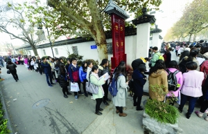 昨天凌晨三點(diǎn),南京市招生辦公室門口就來了兩個(gè)年輕女孩,她們是參加南京2016年新教師招聘現(xiàn)場確認(rèn)的。2016年南京市教育局直屬學(xué)校和四城區(qū)(玄武區(qū)、秦淮區(qū)、建鄴區(qū)、鼓樓區(qū))教育局所屬公辦全民事業(yè)單位編制內(nèi)中小學(xué)(包括職業(yè)學(xué)校、幼兒園)招聘新教師666人,網(wǎng)報(bào)10100多人,相當(dāng)于15挑1。昨天現(xiàn)場確認(rèn)報(bào)名的人數(shù)有3198人,2016年招考海歸碩士首次參加競爭。