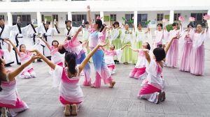 自2005年起,開中學子一直堅持每周一歌的活動。每天下午上課前全校千名同學齊唱一首歌。這是任何一所學校都沒有的特色。堅持至今,可以說不僅是情操的陶冶,更是好習慣養(yǎng)成的鍛煉。同學們通過每天的演唱,凈化了心靈、陶冶了情操,演繹著多彩的青春。