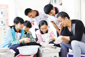 學生們正在學習陶藝拉坯制作