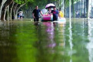 南京理工大學(xué)校內(nèi)又一次遭了殃,學(xué)生們出行受到很大影響。學(xué)校后勤調(diào)來(lái)橡皮艇,護(hù)送師生出行。為什么南京只要一下暴雨,南理工就會(huì)淹?師生們急盼有效解決辦法。