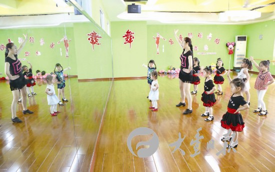 7月16日,人民路一藝術(shù)培訓(xùn)中心內(nèi),小朋友們跟著老師在音樂聲中翩翩起舞。隨著暑假的到來(lái),除了完成暑假作業(yè),學(xué)習(xí)音樂、舞蹈、繪畫等,被學(xué)生和家長(zhǎng)熱捧。王越 攝