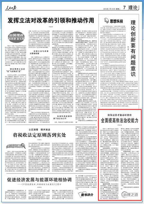 南師大黨委書記人民日報撰文:依靠法治才能辦好教育