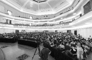 來聽講座的人坐滿了東大大禮堂 趙杰/攝