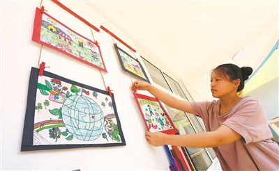 28日,東?h第一幼兒園老師布置教室。