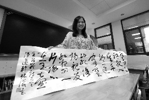 “這幅書法作品,是我?guī)У牡谝粚玫囊粋學生去年教師節(jié)送的。”說起這事,干露特別開心,因為那是20年前的學生。