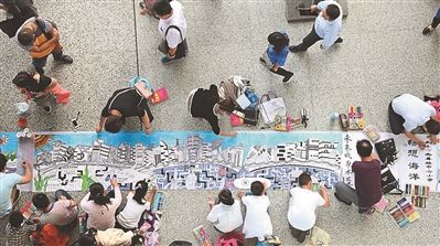 17日,以“創(chuàng)新放飛夢想,科技引領(lǐng)未來”為主題的2016年南京全國科普日主場活動在南京科技館啟動,來自南京市18所小學(xué)的百余名孩子們共繪百米科幻畫長卷。 (劉建華)