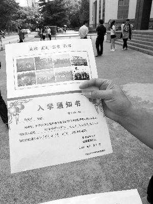 在采訪中,現(xiàn)代快報(bào)記者得知,南京財(cái)經(jīng)學(xué)校一名學(xué)生的家長(zhǎng)張女士是9月5日才給兒子報(bào)名的,而且拿到了入學(xué)通知書,上面寫著:“某某同學(xué)符合我校高等教育全日制自考考試助學(xué)專業(yè)的入學(xué)條件,同意入本校財(cái)務(wù)會(huì)計(jì)與審計(jì)專業(yè)二年制本科學(xué)習(xí)。”但是仔細(xì)看發(fā)現(xiàn),通知書上沒有蓋審計(jì)大學(xué)的公章。