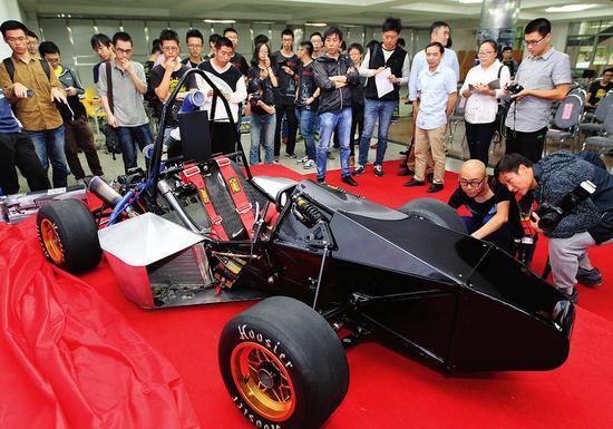 學生們自主研制的方程式賽車亮相 本報記者 馬昭 攝