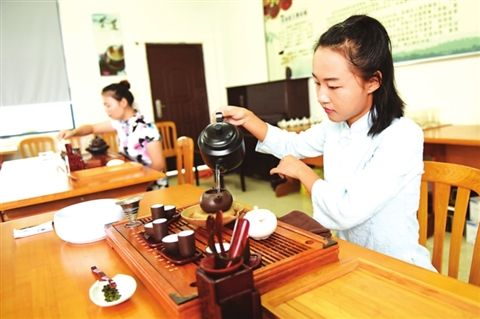 蘇州大學(xué)生身穿旗袍學(xué)茶藝 拓寬就業(yè)渠道
