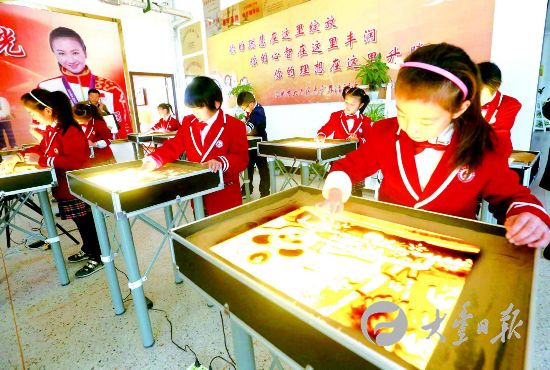 近日,區(qū)城東實驗小學的學生們在創(chuàng)作沙畫。近年來,該校加大課程改革力度,成立了書法、沙畫、拉丁舞、琵琶等40多個特色社團,努力給每個學生提供合適的學習平臺,豐富課余生活。 邱鵬 攝